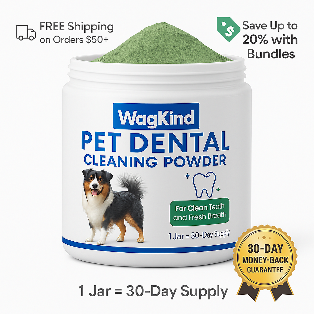 WagKind’s Dog Dental Powder is more than just a breath mint. It’s powered by our Triple-Action Formula: